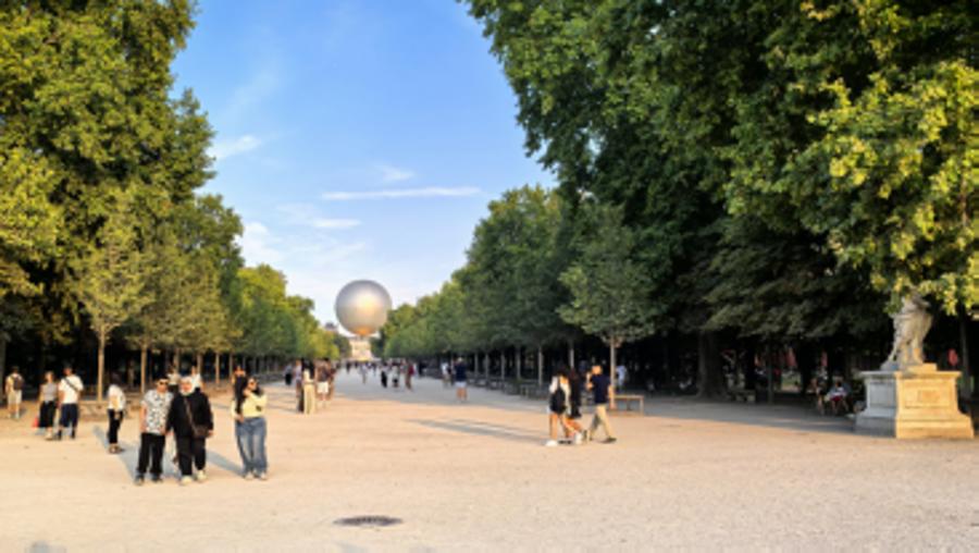 与远在巴黎市郊的凡尔赛宫苑不同,杜乐丽花园坐落在塞纳河旁,位于卢浮宫与协和广场之间,是感受巴黎城市氛围的最佳之选。从卢浮宫广场沿着中轴线向西,最先映入眼帘的是巴黎奥运会主火炬台的“热气球”,这是对200多年前在杜乐丽花园成功升空现代热气球的致敬。