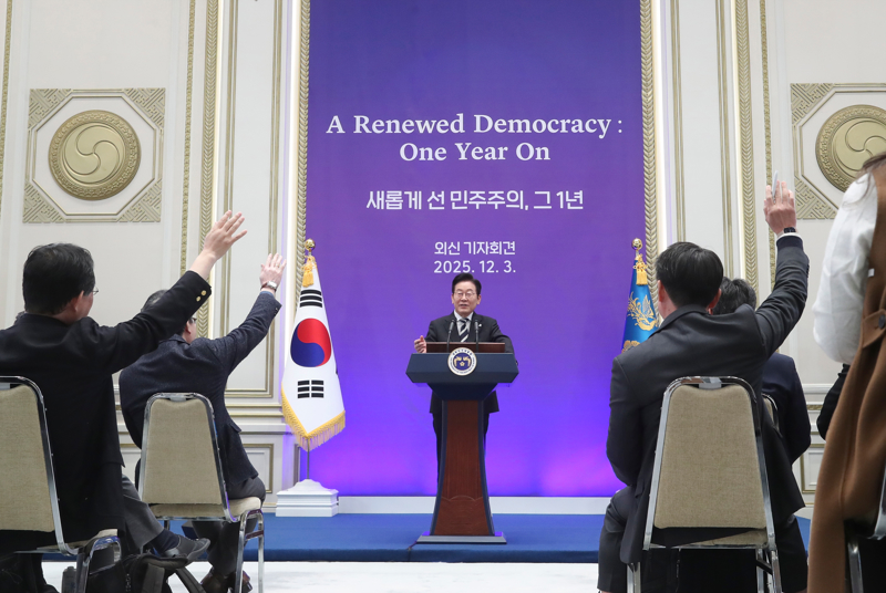 12月3日,在韩国首都首尔青瓦台迎宾馆,韩国总统李在明举行外媒记者会。李在明12月3日表示,韩国政府将把12月3日定为国民主权日,以纪念国民在2024年12月3日帮助阻止紧急戒严令的勇气与行动。\n 新华社记者 姚琪琳 摄
