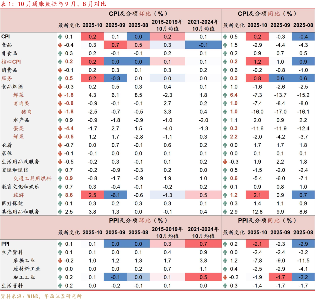 综合来看,10月通胀数据超出预期,CPI更多受到节日因素的推动,而PPI受到反内卷、以及海外有色、存储涨价等因素的带动。
